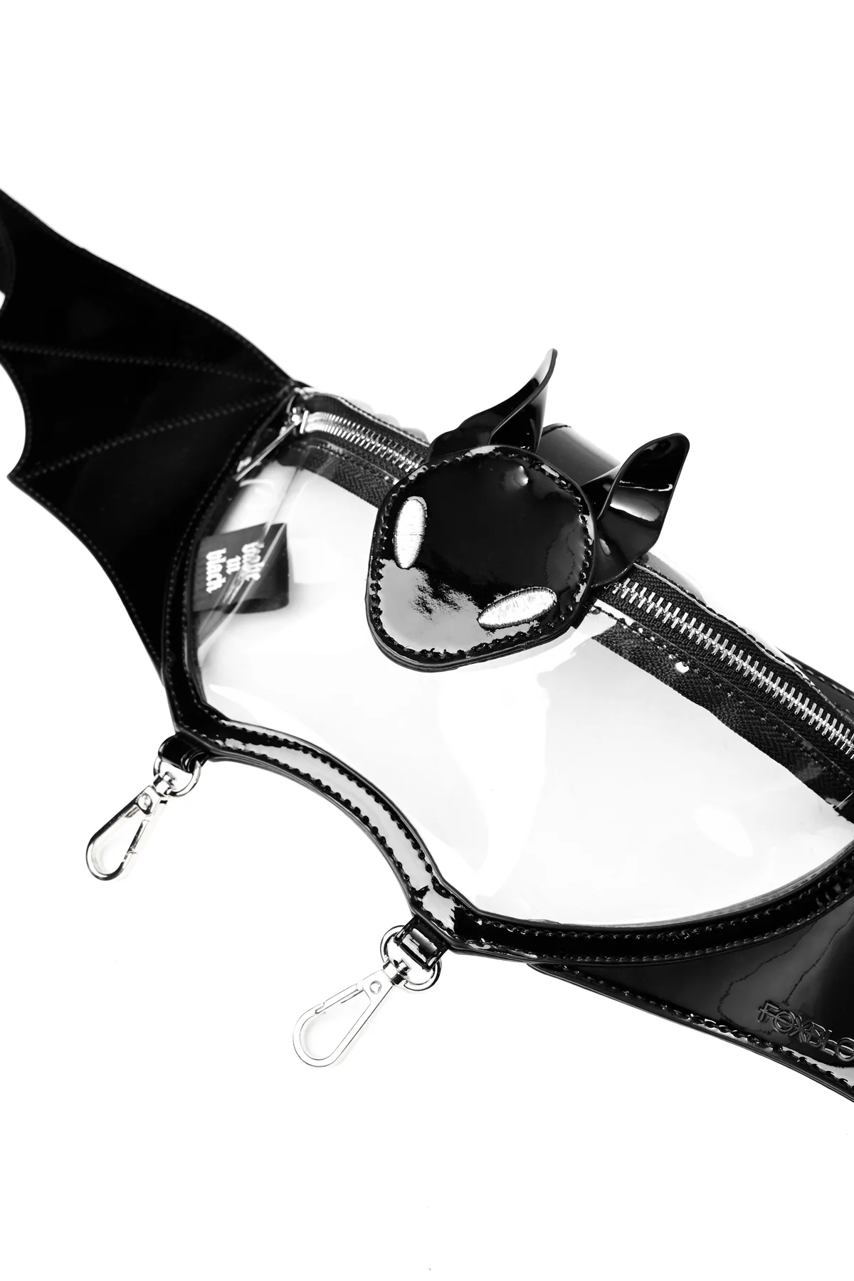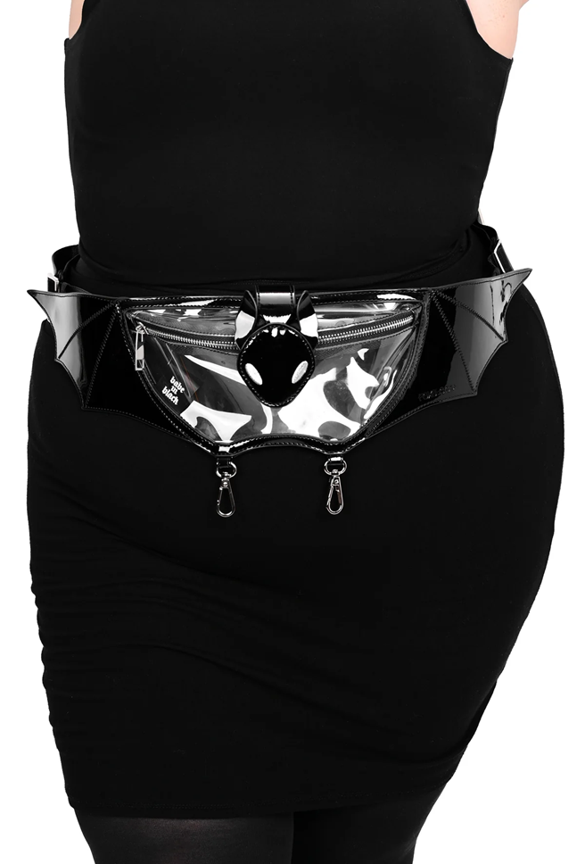 Lepakonmuotoinen vyölaukku, jossa yläosan vetoketjukiinnitys – juuri sopivasti tilaa tärkeimmille tavaroille.