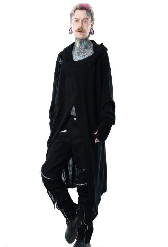 Rento hupullinen neule, jossa solkiyksityiskohta.