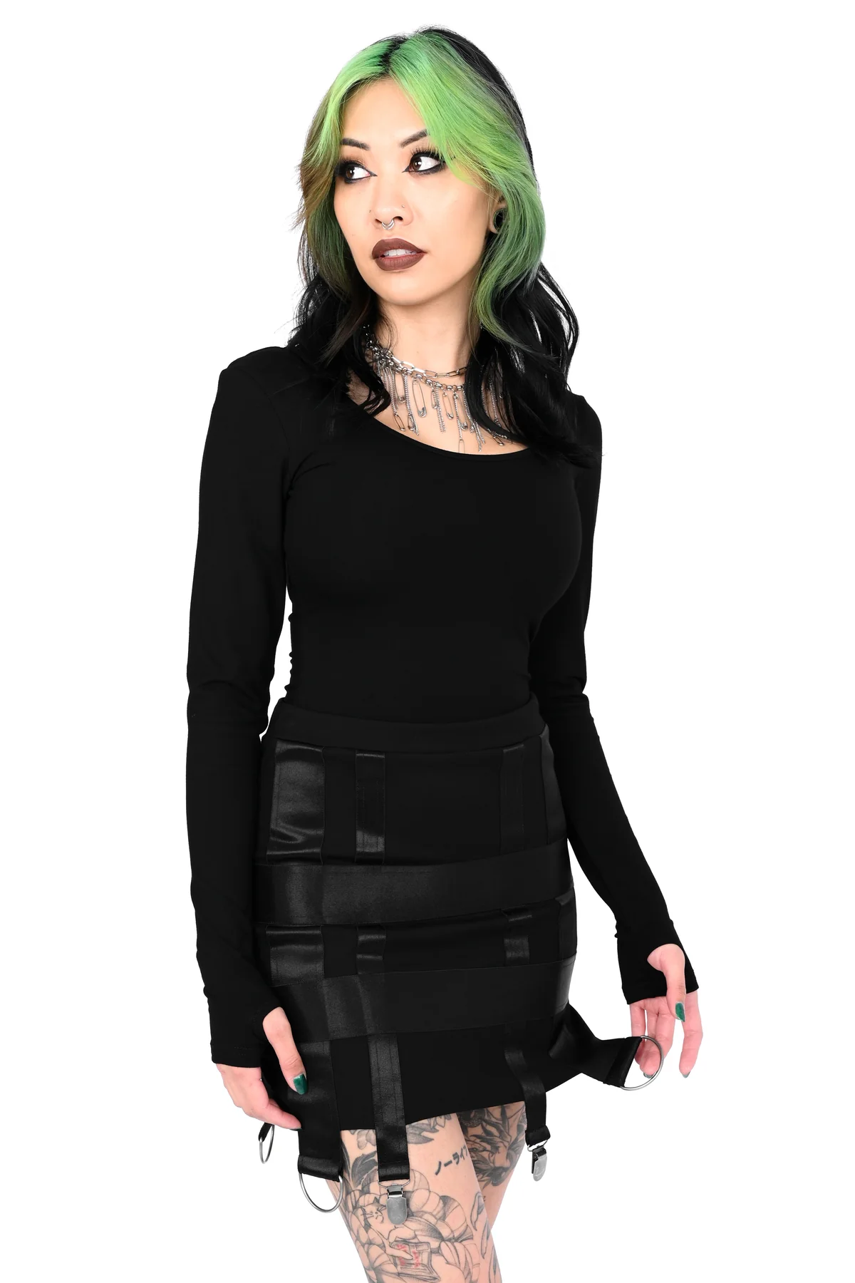 Upea musta minihame, joka kietoo sinut rohkeaan ja näyttävään lookiin.