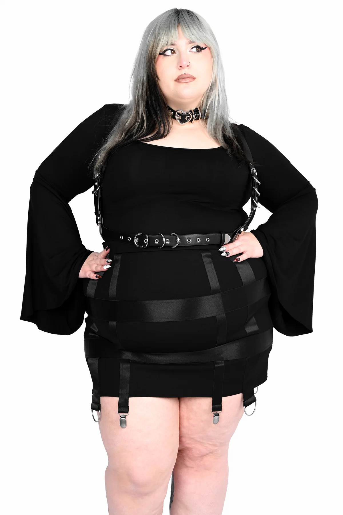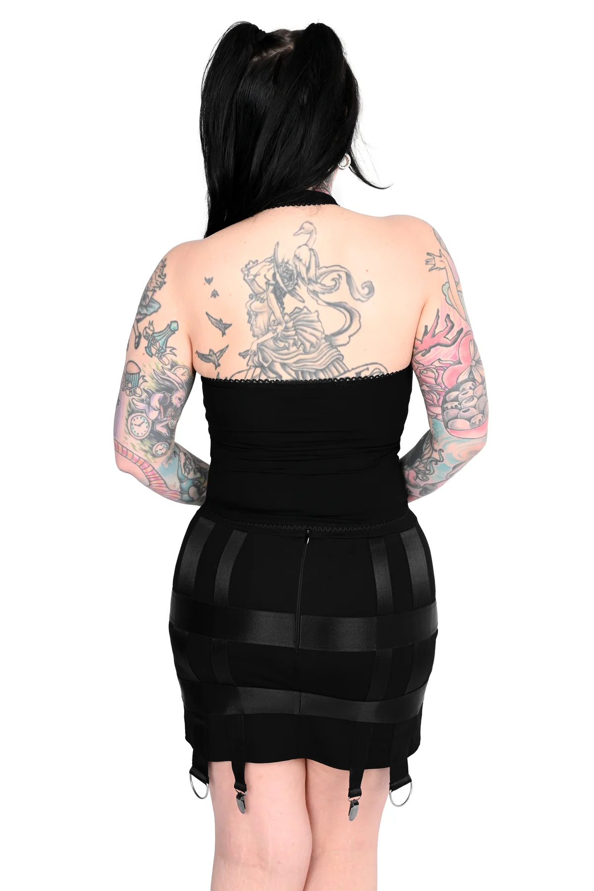 Kauttaaltaan ommeltu joustava caging-koristelu luo modernin, statement‑henkisen siluetin.