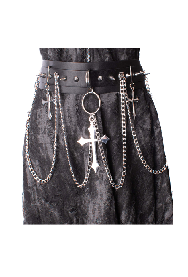 Tekonahkainen vyö ketjuin ja ristikoristein. Upea lisä asukokonaisuuteen!