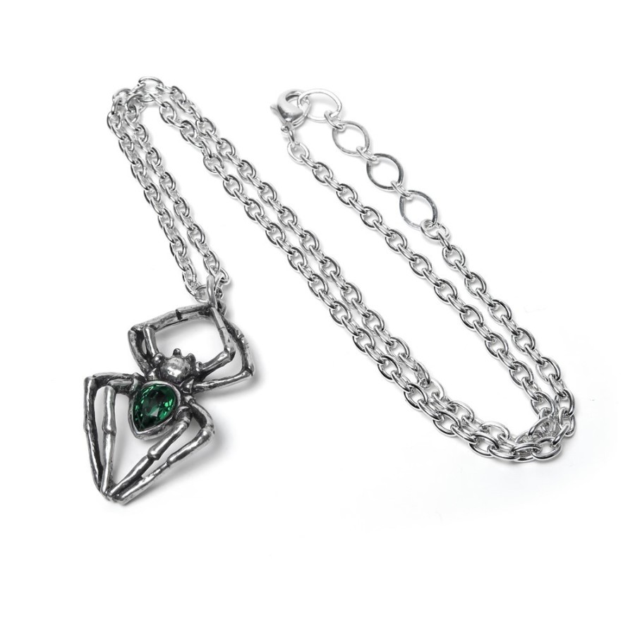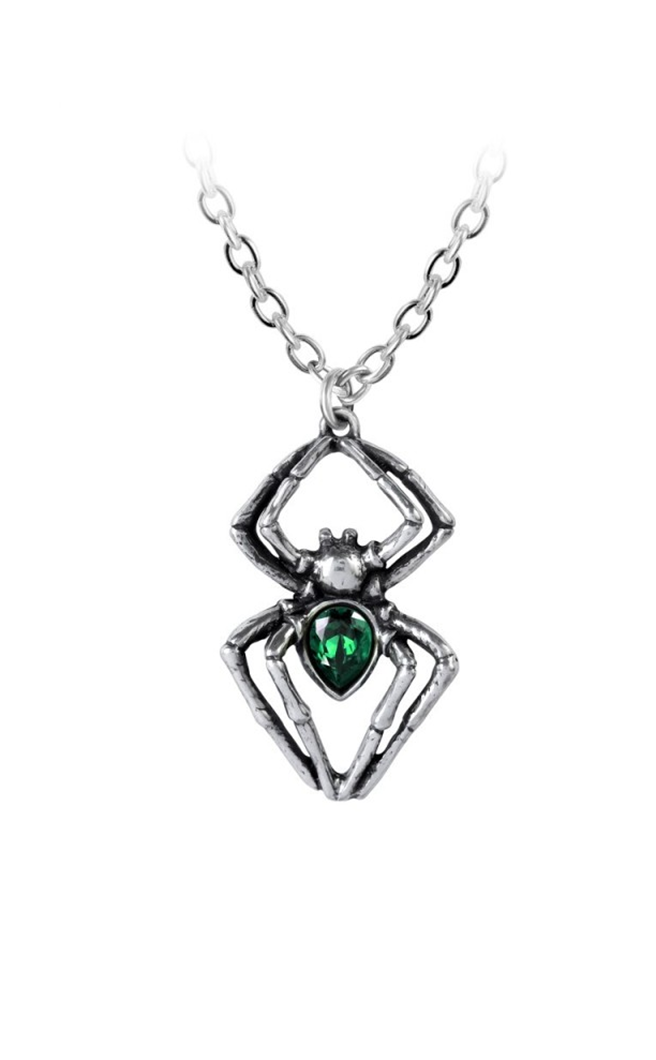 Pienikokoinen mutta näyttävä hämähäkkiriipus, jonka vartalona loistaa syvän smaragdinvihreä itävaltalainen kristalli. Yksityiskohtainen tinavalu tekee korusta voimakkaan ja kiehtovan katseenvangitsijan.