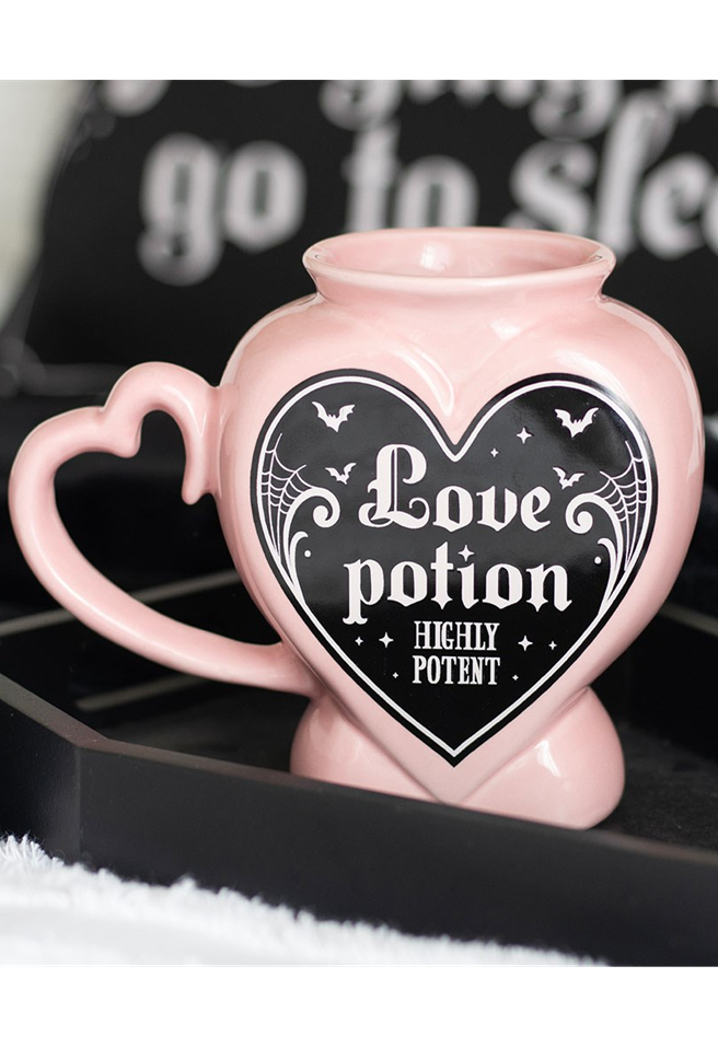 Lisää ripaus taikuutta tee- tai kahvihetkiisi tällä hurmaavalla Love Potion -mukilla, joka on muotoiltu kuin oikea rakkausjuomapullo. Vaaleanpunaiset yksityiskohdat ja goottisävytteinen muotoilu tekevät siitä yhtä aikaa söpön, mystisen ja vastustamattoman näyttävän. Myös ihana lahja! 🥰🔮