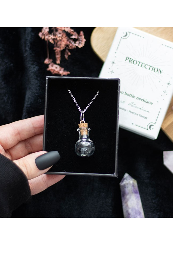 Protection Black Obsidian Crystal Chip Potion Bottle Necklace