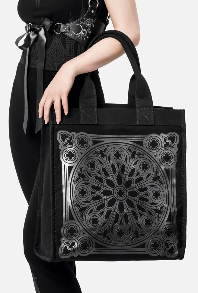 Rosarium‑kangaskassi on suunniteltu kestämään aikaa yhtä jykevästi kuin goottilaiset katedraalit, joista se ammentaa inspiraationsa. Raskas puuvillakangas, vahvistettu rakenne ja näyttävä gunmetal‑sävyinen ruusuikkunaprintti tekevät laukusta sekä käytännöllisen että visuaalisesti vaikuttavan. Tämä on täydellinen valinta sinulle, joka haluat yhdistää arjen tarpeet goottiseen eleganssiin ja pitkäikäiseen laatuun.