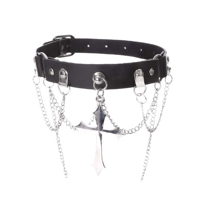 ✶ Tuo tyyliisi tummaa eleganssia tämän Unholy Choker –kaulakorun avulla. Mustasta keinonahasta valmistettu choker on varustettu metallisilla yksityiskohdilla, jotka huokuvat rock- ja goottivaikutteita.