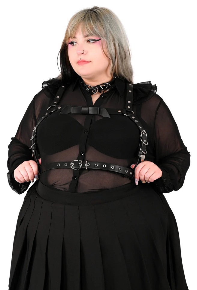 Tämä harness on yksi suosikkiasusteista koskaan – nyt mustana ja varustettuna erityisellä, lepakkosiipien muotoisella rusetilla. Vyötäröltä, selästä, olkapäiltä ja etuhihnasta säädettävä malli on suunniteltu istumaan mukavasti kaikille vartalotyypeille.