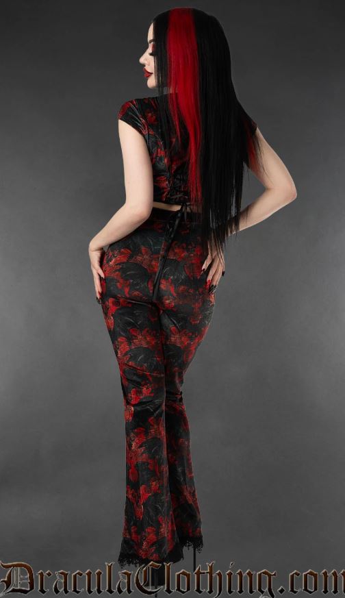 Kauniit samettiset leveälahkeiset housut. Housuissa on taskut. Kaunis pitsi lahkeensuussa. Kangas joustava ja vyötäröllä kuminauha.